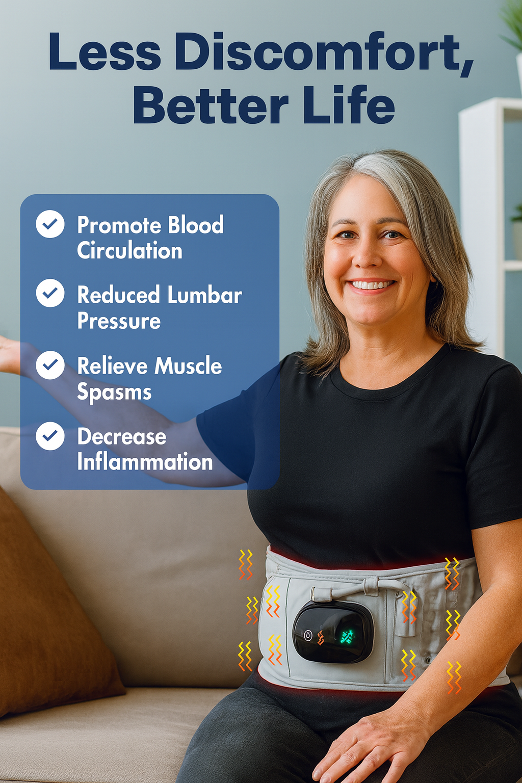 With customizable soothing heat, the belt enhances circulation by expanding the blood vessels in your lower back, allowing fluids to flow more freely.